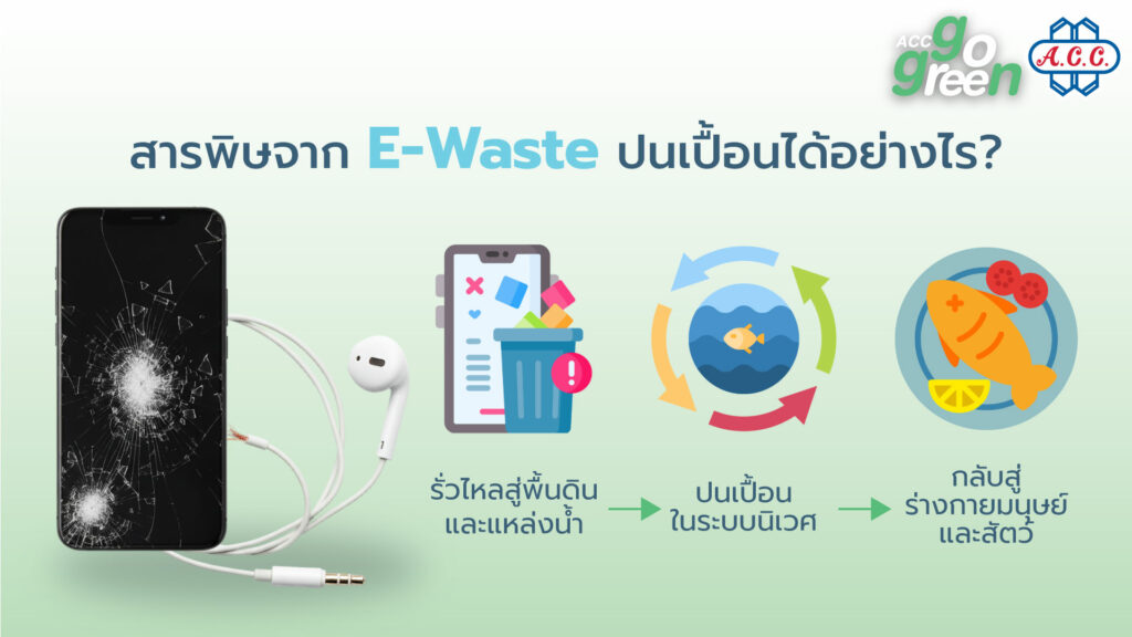 ลองจินตนาการดูว่าสารพิษเหล่านี้จะเดินทางต่อไปได้อีกยาวไกลขนาดไหน มันจะไหลลงสู่แม่น้ำลำคลอง และทะเล ส่งผลกระทบต่อสัตว์น้ำและพืชที่อยู่ในน้ำ เมื่อเราบริโภคอาหารทะเลหรือน้ำที่ปนเปื้อนสารเหล่านี้เข้าไป สารพิษก็จะสะสมอยู่ในร่างกายของเรา ทำให้เกิดความเสี่ยงต่อปัญหาสุขภาพที่ร้ายแรง เช่น โรคทางระบบประสาท ปัญหาสุขภาพของไตและตับ หรือแม้กระทั่งความผิดปกติของพัฒนาการในเด็กเล็ก นอกจากนี้การเผาขยะอิเล็กทรอนิกส์อย่างไม่ถูกวิธีเพื่อแยกเอาโลหะมีค่าก็ยิ่งทำให้สารพิษกระจายออกไปในอากาศซึ่งเป็นอันตรายต่อระบบทางเดินหายใจของมนุษย์และสัตว์อีกด้วย