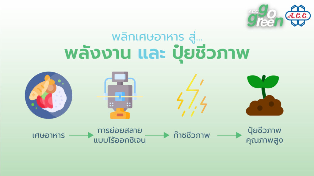 เมื่อเศษอาหารถูกนำเข้าสู่ถังย่อยสลายแบบปิดโดยไม่มีออกซิเจน มันจะเกิดปฏิกิริยาทางชีวภาพที่ผลิตก๊าซชีวภาพ (Biogas) ซึ่งส่วนประกอบหลักคือก๊าซมีเทนและคาร์บอนไดออกไซด์ ก๊าซมีเทนที่ได้นี้สามารถนำมาใช้ประโยชน์ได้ทันทีและหลากหลาย ดังนี้