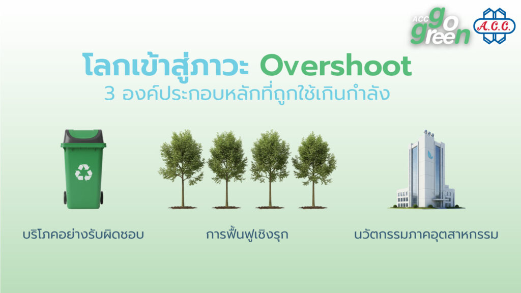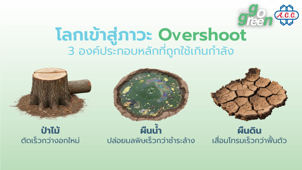มนุษย์ในยุคปัจจุบัน โดยเฉพาะในภาคอุตสาหกรรมและการบริโภค ได้เร่งจังหวะการใช้ทรัพยากรโลกจนถึงจุดวิกฤต การขยายตัวของเมือง การเกษตรเชิงเดี่ยว และการผลิตที่มุ่งเน้นผลกำไรสูงสุด ได้ทำให้โลกเข้าสู่ภาวะ Overshoot หรือภาวะใช้เกินกำลัง โดยเฉพาะในสามองค์ประกอบหลักของระบบนิเวศ ดังนี้