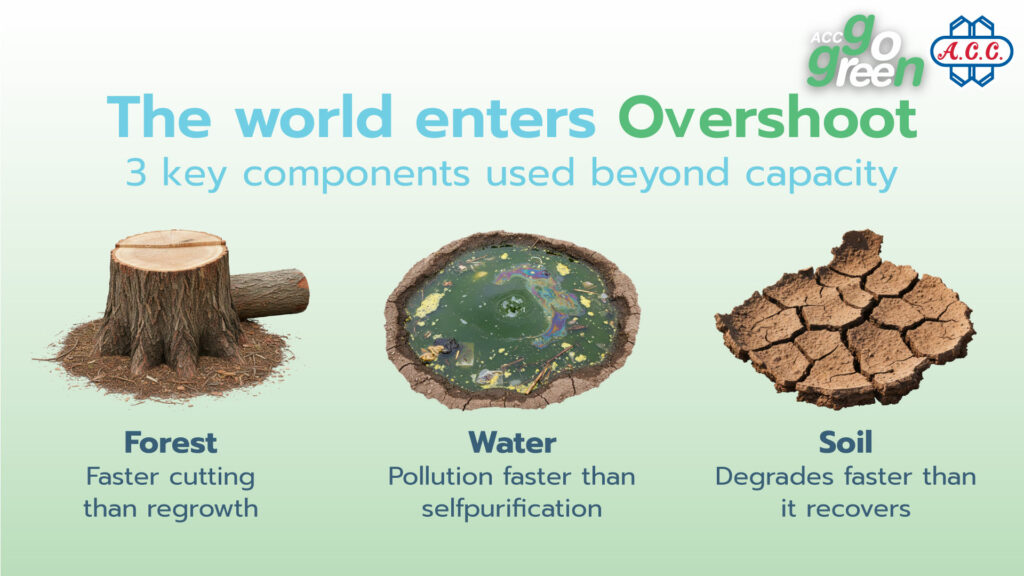 Modern humanity, particularly in the industrial and consumer sectors, has accelerated the consumption of the world’s resources to a critical point. Urban expansion, monoculture farming, and production focused on maximum profit have pushed the planet into a state of Overshoot, or a state of overutilization, especially concerning the three main components of the ecosystem: